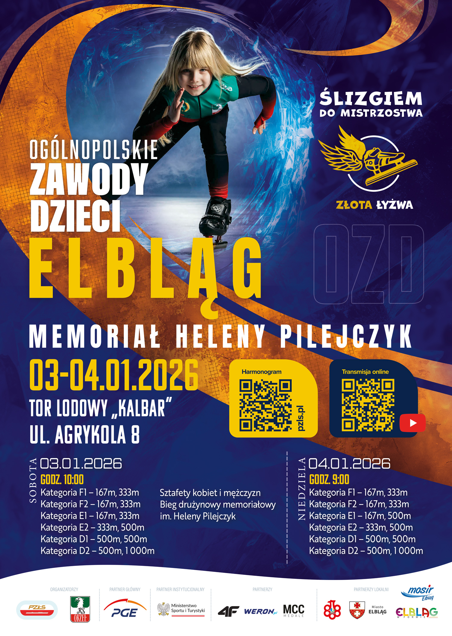 Już 3–4 stycznia 2026 r. zapraszamy do Elbląga na wyjątkowe ogólnopolskie zawody łyżwiarstwa szybkiego dla dzieci