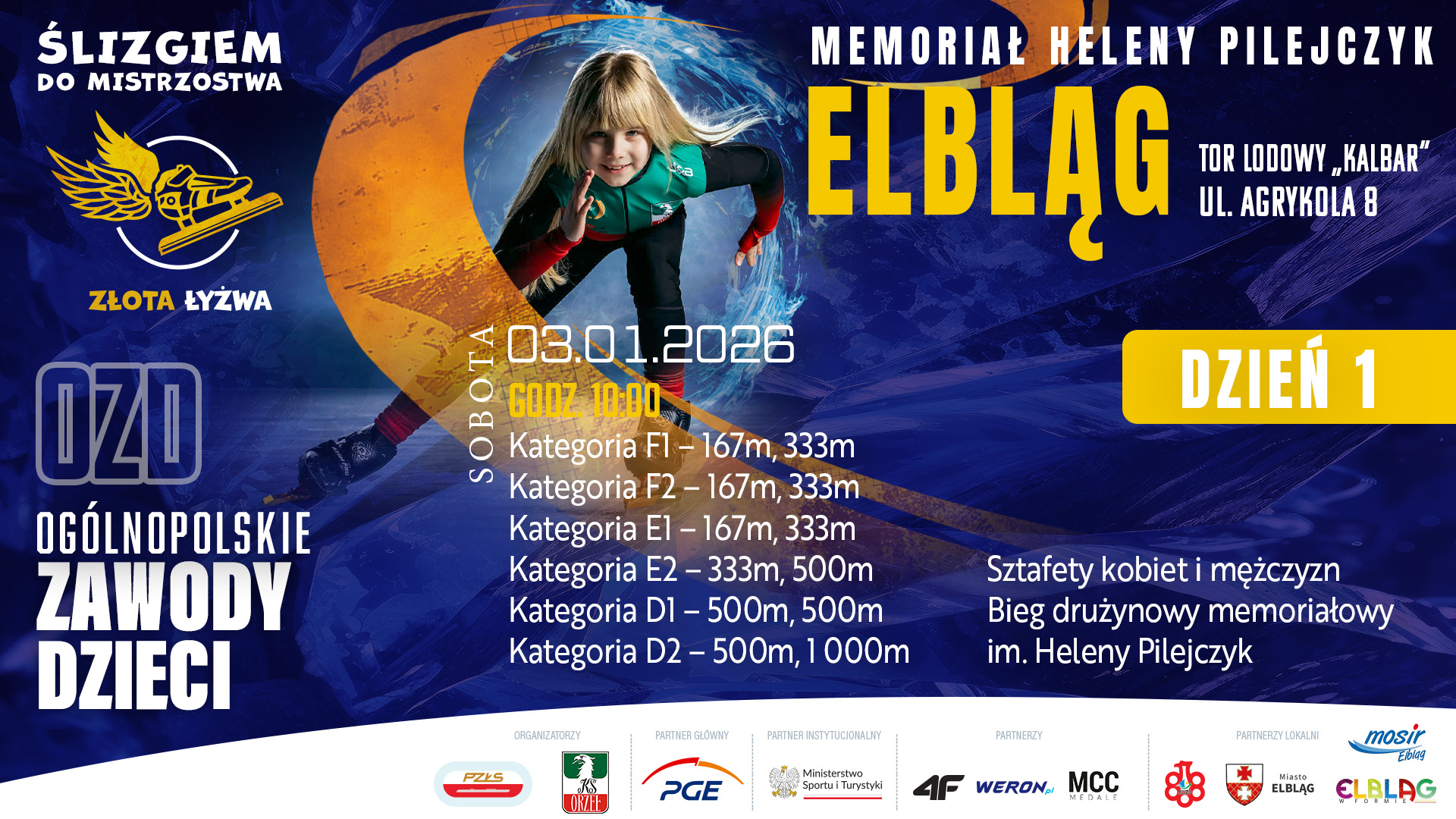 Już jutro zapraszamy do Elbląga na wyjątkowe ogólnopolskie zawody łyżwiarstwa szybkiego dla dzieci